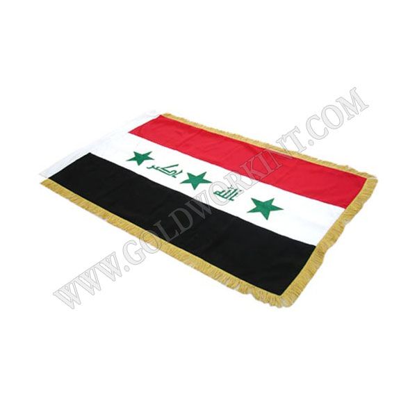 The high quality satin ground material, on which this table & full size flag is made and the mylar fringing makes it suitable for indoor ceremonial use only. Measures 26 x 17cm for table size. Measures 146 x 90cm for full size.